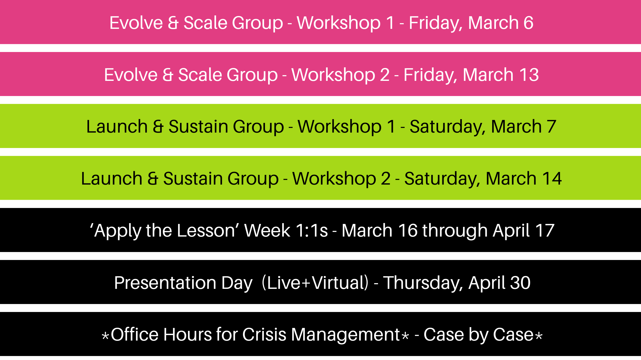 Access to 2 Workshop Days in March (Different Days for Each Cohort)